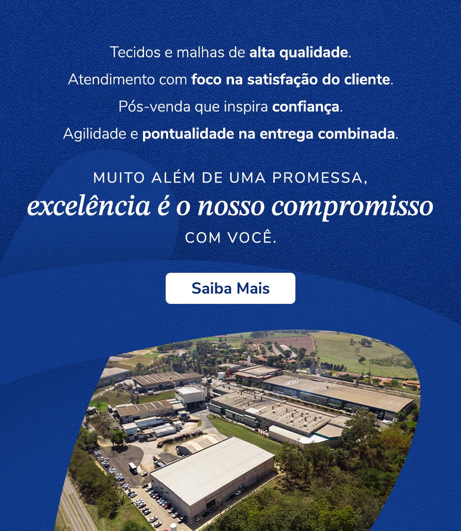 Uma marca referência no segmento de tecidos e malhas, destacando-se pela qualidade e inovação. Nossas matérias-primas são rigorosamente selecionadas, agregando valor para os seus uniformes. Nossa produção é verticalizada, garantindo total controle em cada etapa, com responsabilidade ambiental, consistência na entrega e compromisso total com a sua satisfação.